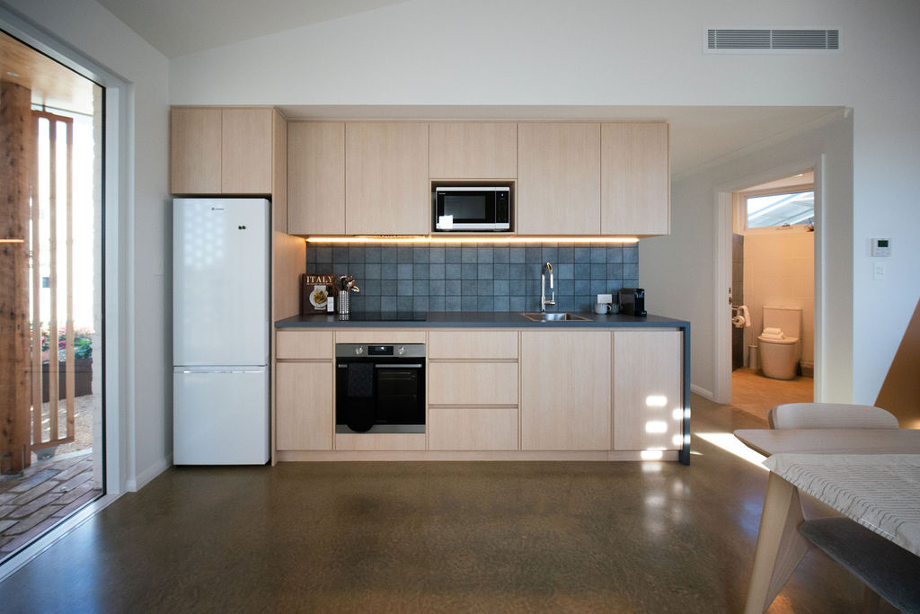Set within a native garden and quiet neighbourhood, outdoor spaces invite you to relax, gather by the fire pit, and fully embrace this distinctive, design-led escape. Every detail has been carefully curated to deliver a stay that feels both effortless and exceptional.